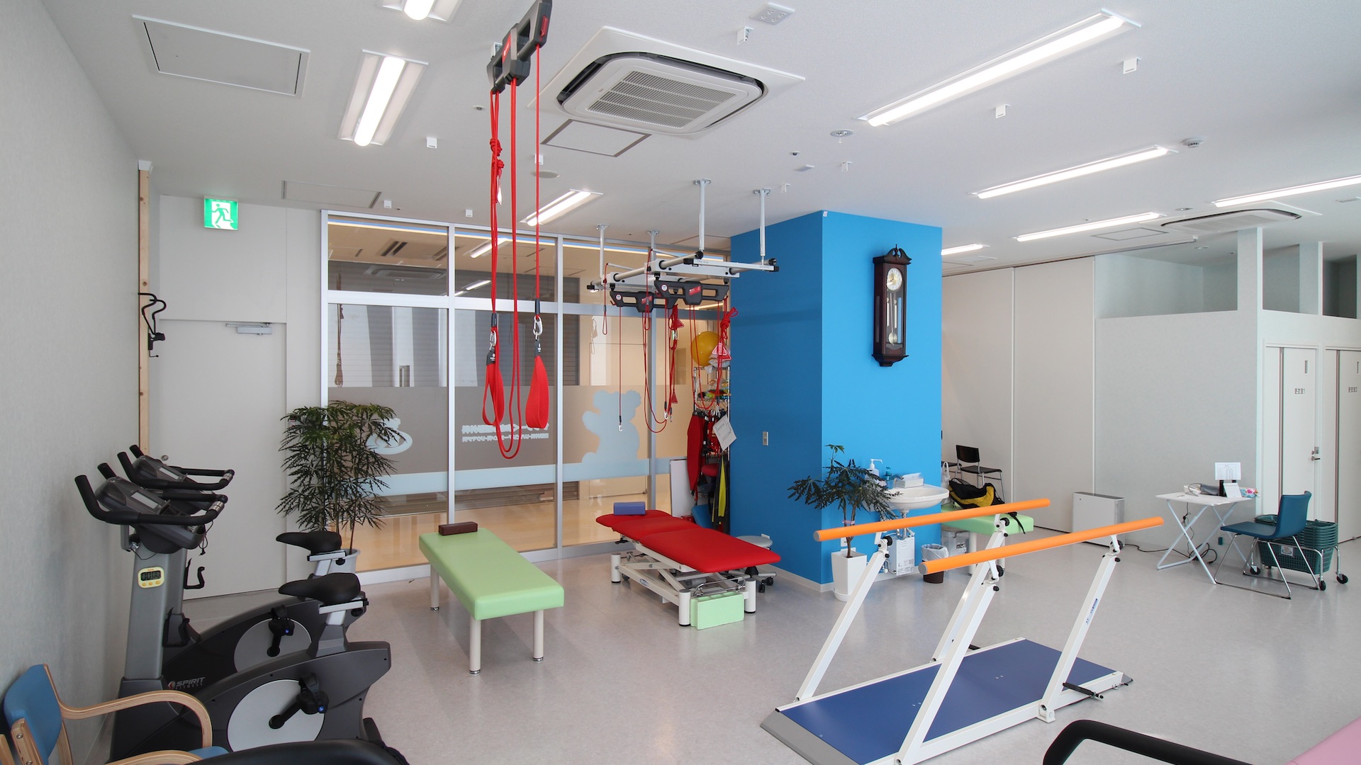 くまさん整形外科の理学療法士もリハビリを担当しています。リハ室にはレッドコードなどの設備も備えており、くまさん整形と同じ方法でリハビリをすることができます。